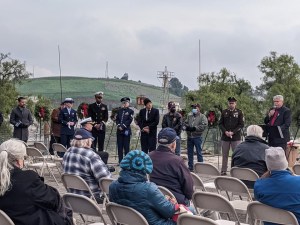 Today I had the pleasure to join Past President, Fred Rutledge at a very nice ceremony by Wreaths Across America held at the Mare Island Naval Cemetery. There was a very good crowd for such a service and all the branches of the Armed Forces were represented. Commander Bryan Dearolf, USN, gave a very thoughtful key speech. After the ceremony, those in attendance quickly laid about 900 wreaths.