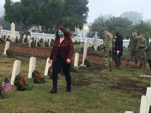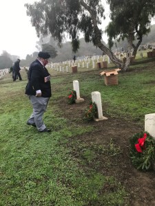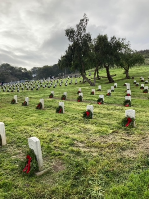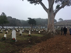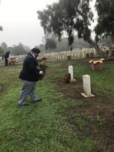 Today I had the pleasure to join Past President, Fred Rutledge at a very nice ceremony by Wreaths Across America held at the Mare Island Naval Cemetery. There was a very good crowd for such a service and all the branches of the Armed Forces were represented. Commander Bryan Dearolf, USN, gave a very thoughtful key speech. After the ceremony, those in attendance quickly laid about 900 wreaths.