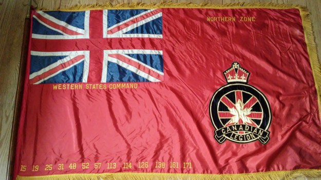 Today, US Branch 25 is one of four branches in the Western US International Zone (and all four branches are based in California). However, at one point in time US Branch 25 was a part of the Northern Zone of the Western Command of the Royal Canadian Legion. As you can see from the flag below, there were 13 branches that formed this zone.
